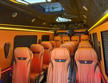 Geniş kapasite ve konforlu Sprinter araçlarımız hizmetinizde.